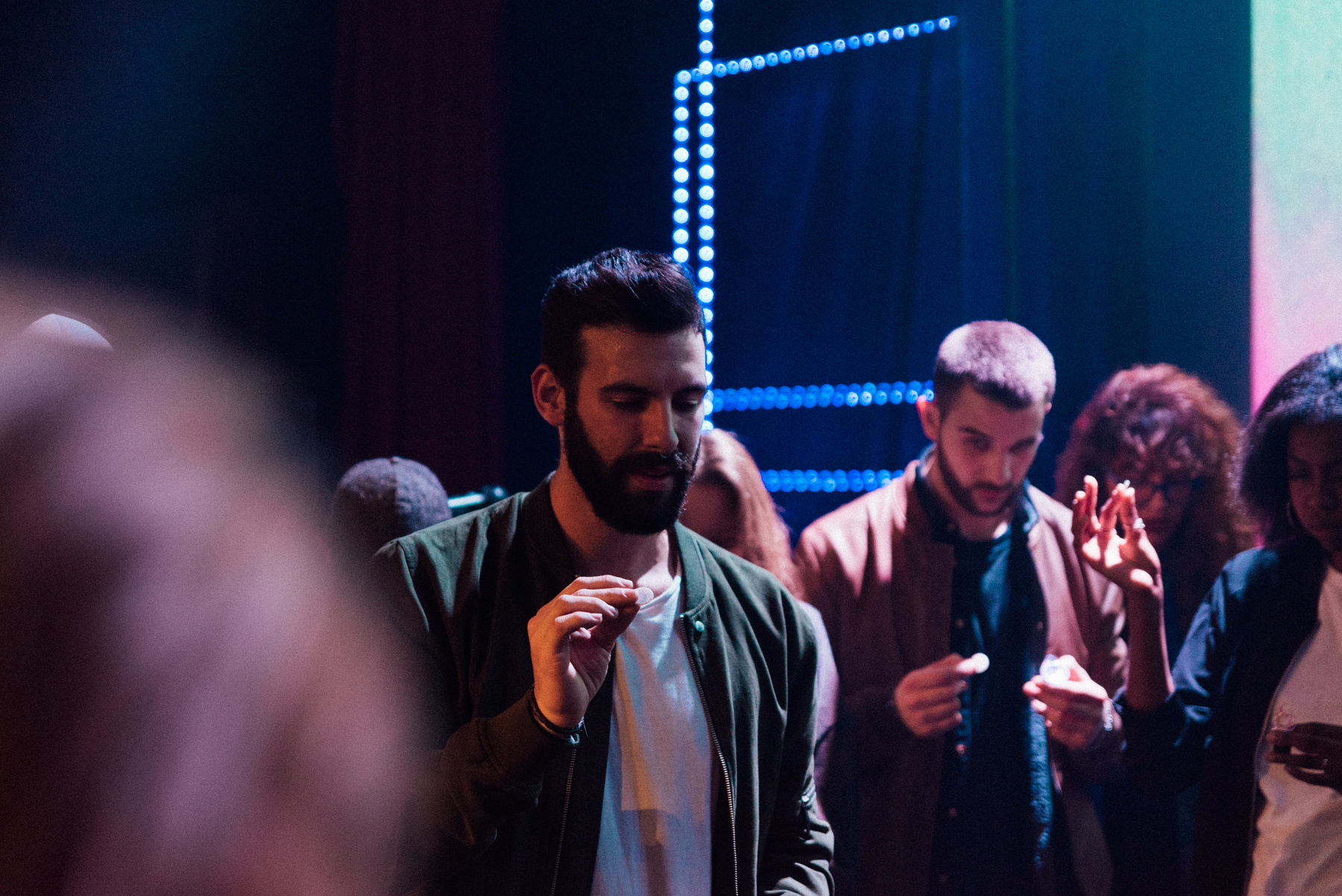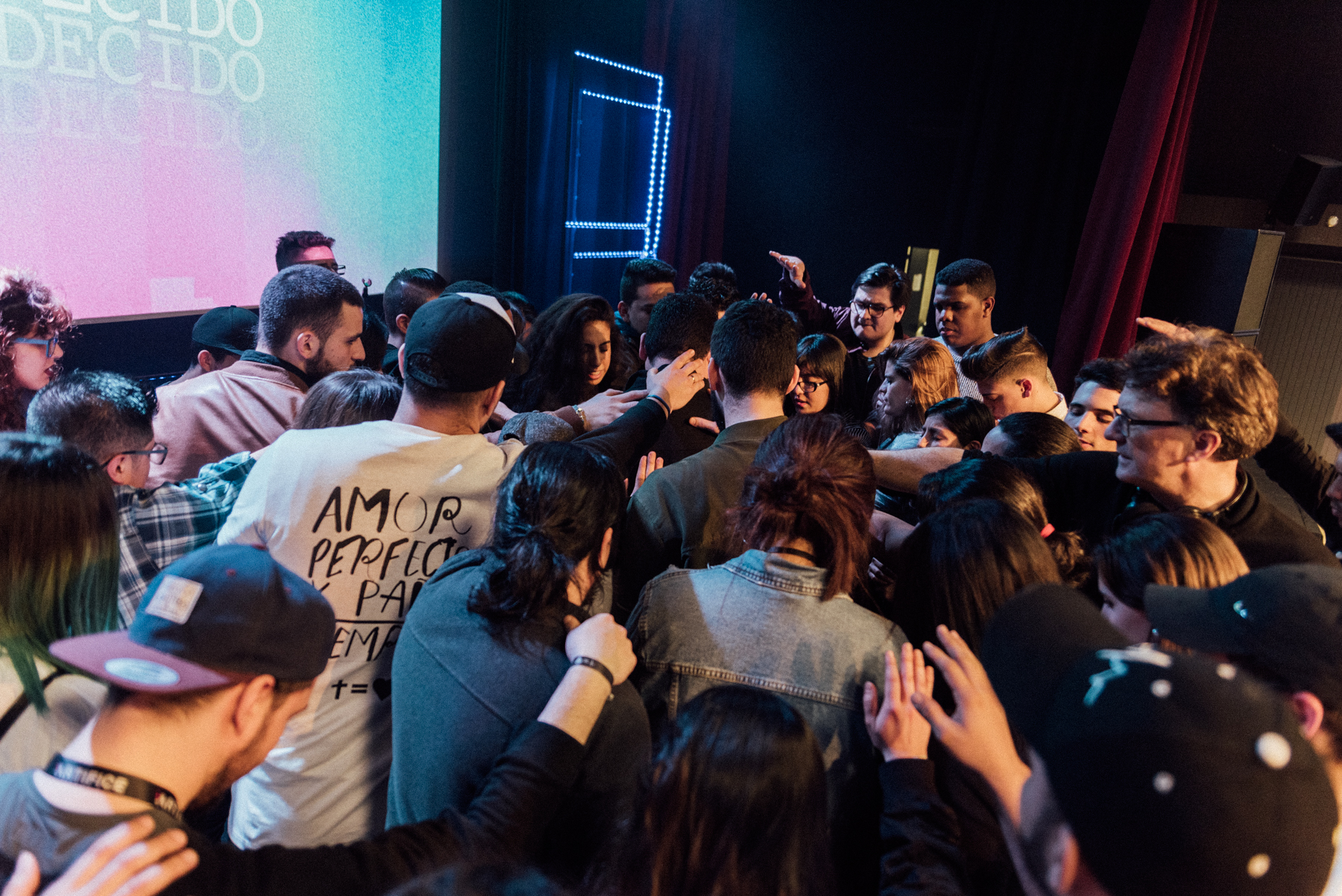 Vestido con unos pitillos, una camisa de cuadros, un tupé impecable y un Mac Book Pro entre las manos, Juan sube al escenario con una energía desbordante. Su discurso, que no es otro que la reinterpretación adaptada de algunos versículos del nuevo testamento, está acompañado por una acertada música de fondo en directo, elementos visuales llamativos que utiliza para enfatizar sus palabras y un lenguaje totalmente coloquial, con expresiones como “flipas” o “eso está muy guay” combinadas con pequeños chistes que aligeran los textos de la Biblia, trayéndolos a la realidad de los más jóvenes. Es cuanto menos rompedor, y lo saben, por eso se esfuerzan en remarcar esta diferencia. “Hay una generación desencantada con la iglesia tradicional que no entiende su mensaje, las palabras, por eso somos muy intencionales en comunicar de una forma juvenil y refrescante”, afirma.
